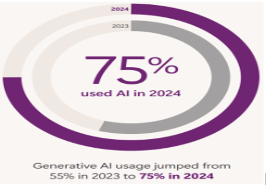 - Apesar de ser uma tecnologia recente, o uso de modelos LLM dentro das empresas saltou de 55% para 75% entre 2023 e 2024;